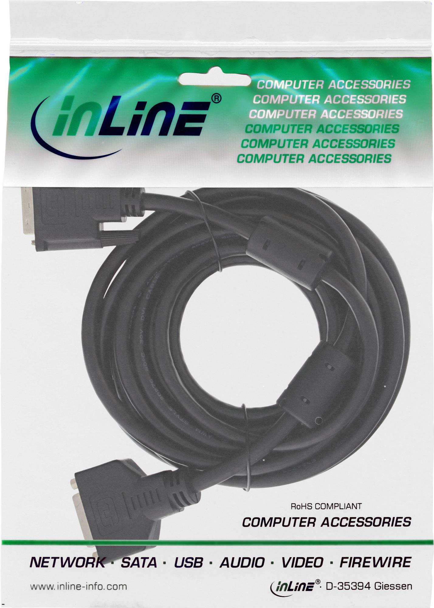 InLine® DVI-D Verlängerung, Dual Link 24+1 St auf 24+1 Bu, 2 Ferritte, 2m (17773)