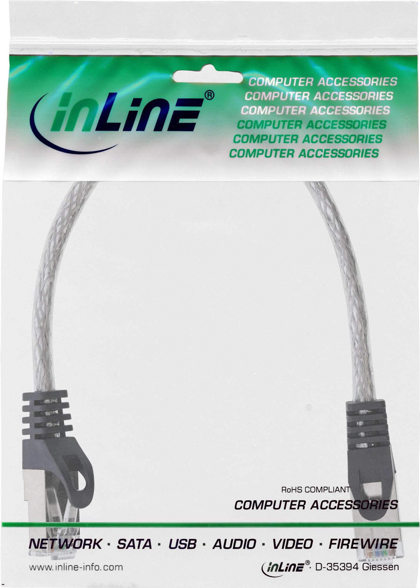 InLine® Patchkabel, SF/UTP, Cat.5e, transparent, 0,25m (72522T)