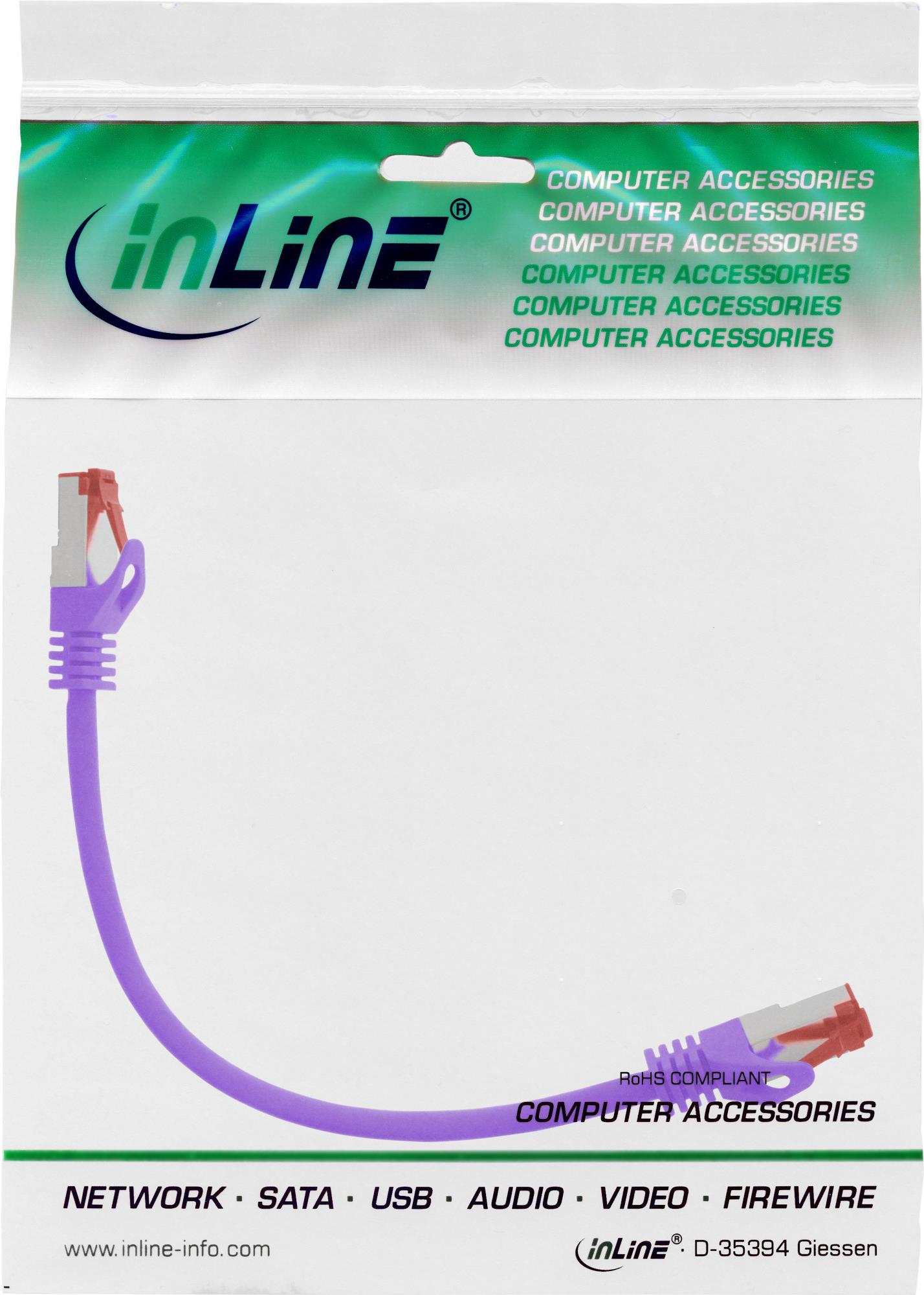 InLine® Patchkabel, S/FTP (PiMf), Cat.6, purple, 0,3m (76433P)