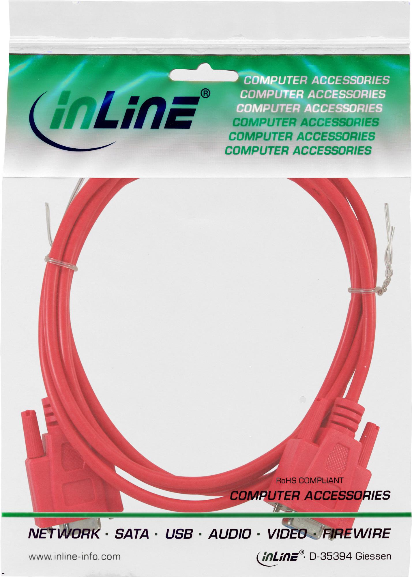 InLine® Nullmodemkabel, rot, 9pol Bu/Bu 2m, vergossen (12222B)