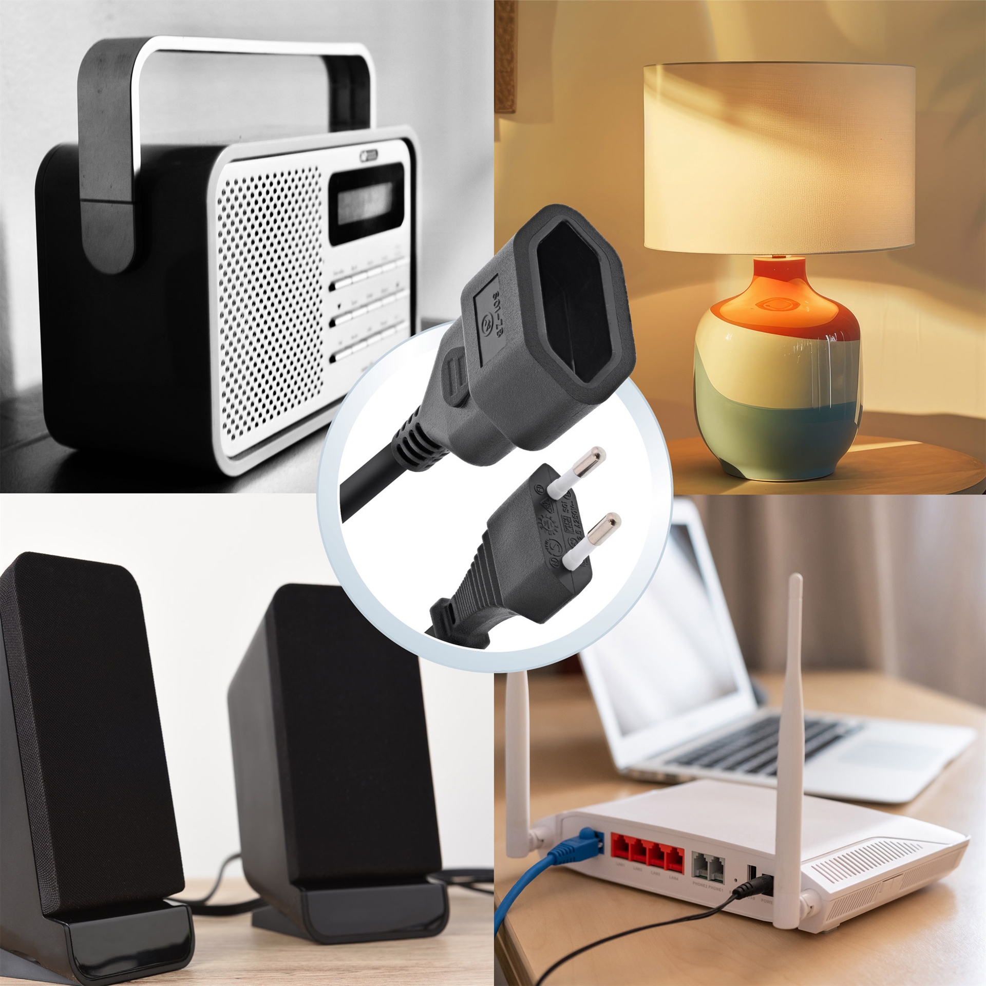 2-poliges Eurostecker-Verlängerungskabel ohne Schutzkontakt. Weit verbreitet in ganz Europa, ist es ideal für die Verlängerung des Netzkabels zahlreicher elektrischer Geräte der Klasse II mit einer maximalen Aufnahme von 2,5A, wie z.B. externe Festplatten, Audio/Video-Peripheriegeräte, Taschenrechner, Radios und kleine Haushaltsgeräte.• Europlug 2-poliger CEE 7/16 Stecker• Maximallast 2,5A/250V• Gegossene Stecker (Druckguss)