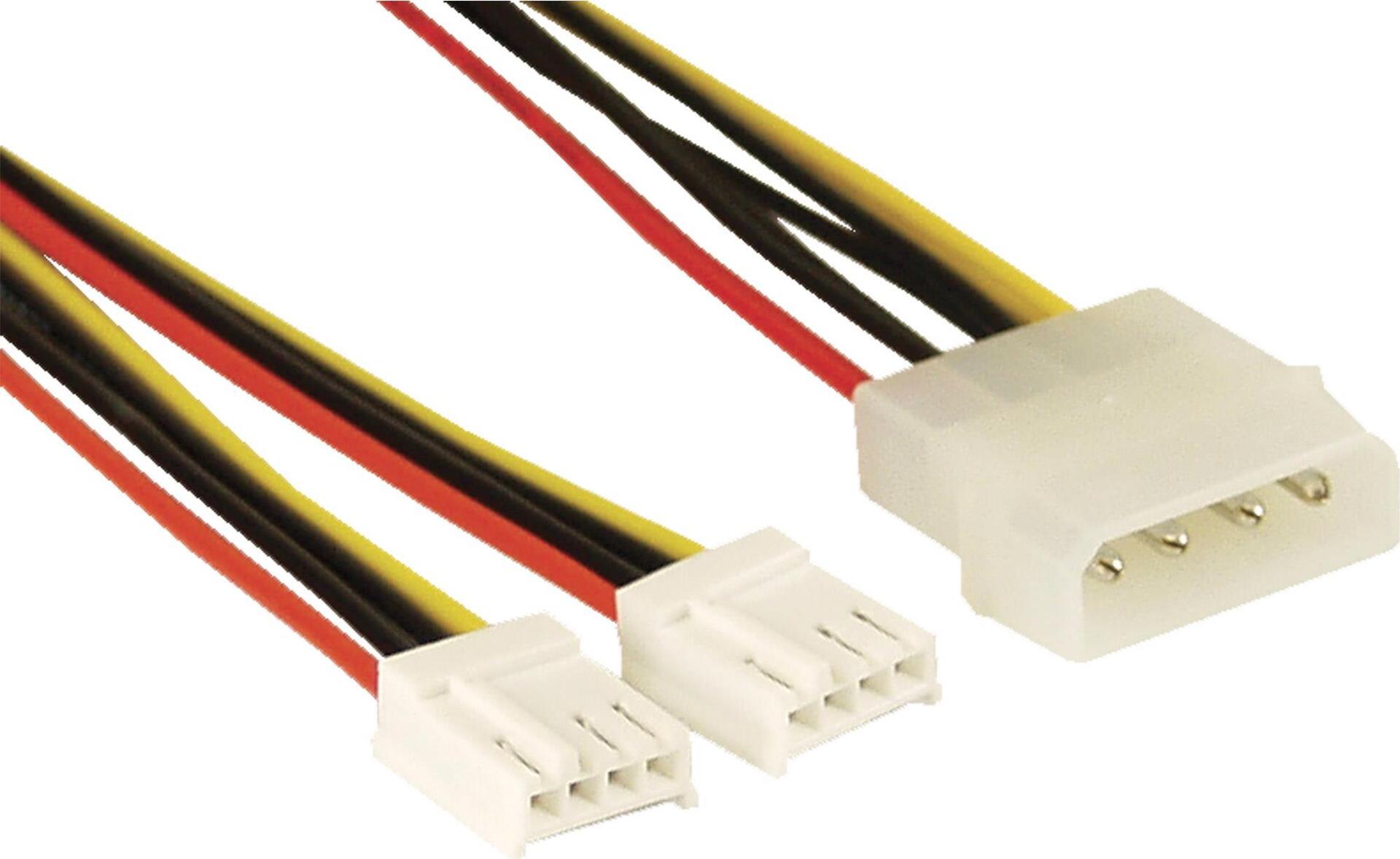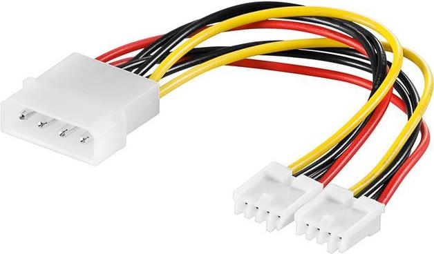 Mit diesem Y-Form Splitterkabel können Sie zwei Floppy-Laufwerke (3,5" / 8,89cm) über einen Standardausgang eines 5,25" (13,34cm) ATX-Netzteils mit Strom versorgen.• 5,25" 4pin Buchse (ATX-Netzteil) auf 2x 3,5" 4pin Stecker (FDD)