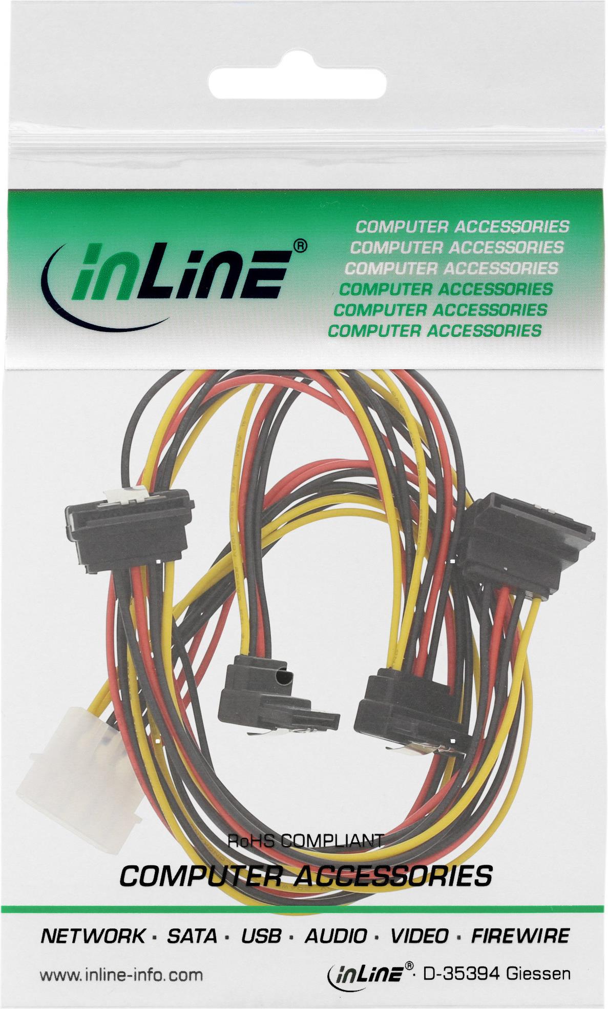 InLine® Strom Y-Kabel intern, 1x 13,34cm (5,25") an 4x 15pol SATA gewinkelt mit Lasche, 40+55cm (29672B)