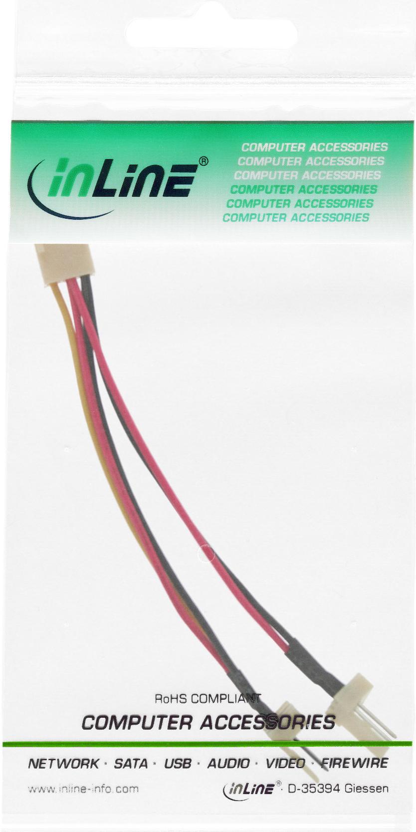 InLine® Lüfter Adapterkabel, 3-pol Molex Bu. an 2x 3-pol Molex St. (33433)