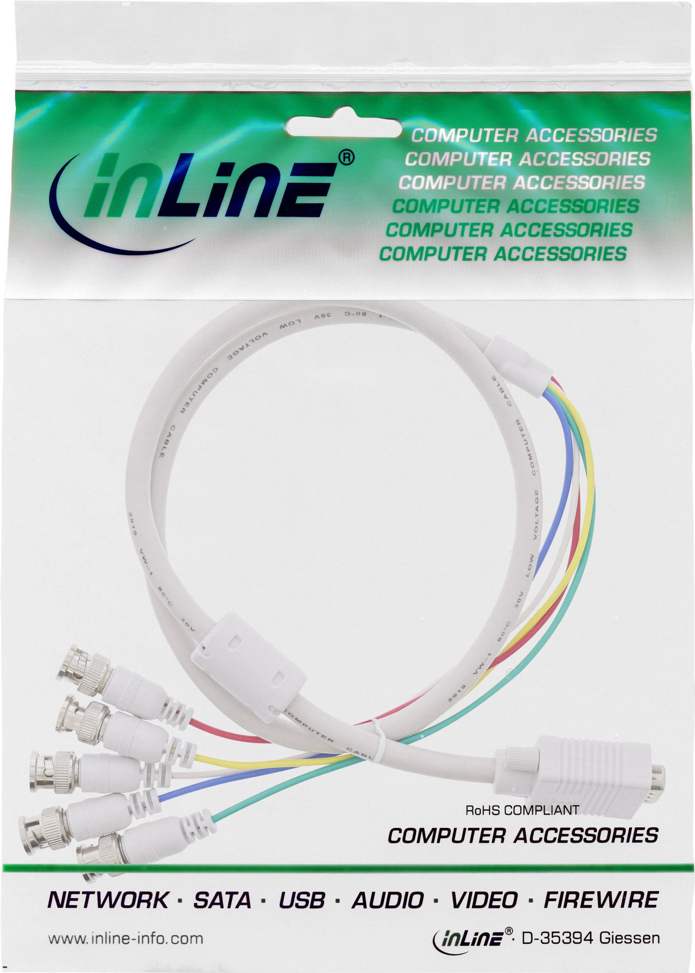InLine® Kabel zur Signalübertragung von der VGA-Videokarte zum Monitor mit BNC-Eingängen (x5)• Sub-D 15poliger HD-Stecker auf 5x BNC-Stecker