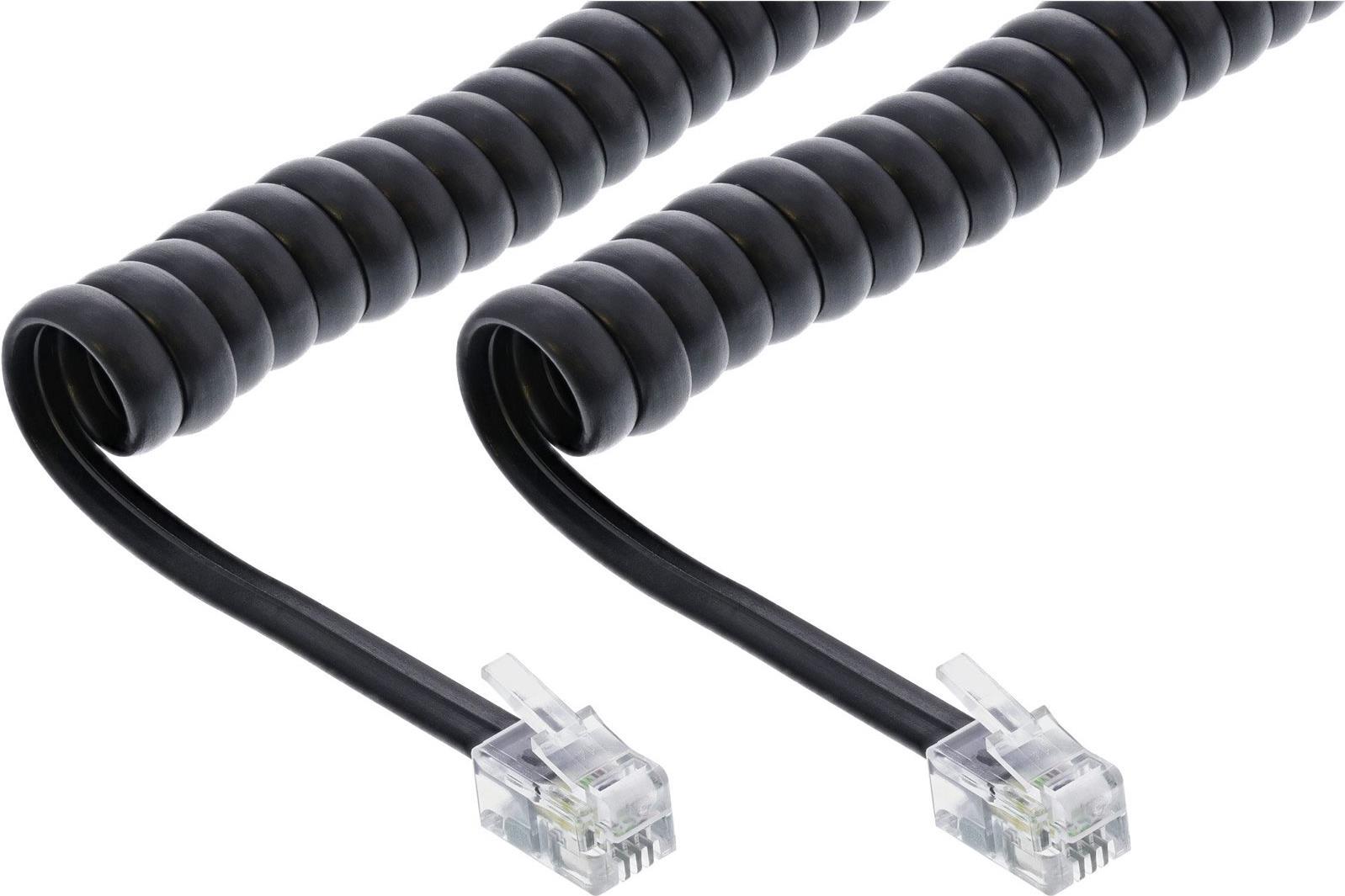 InLine® Spiralkabel, RJ10 St/St, max. 2m schwarz (18893)