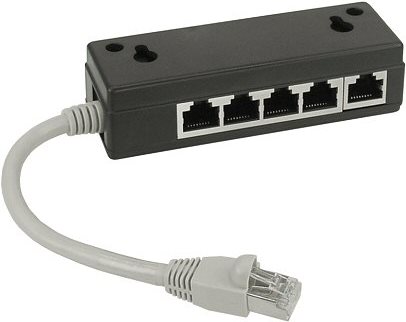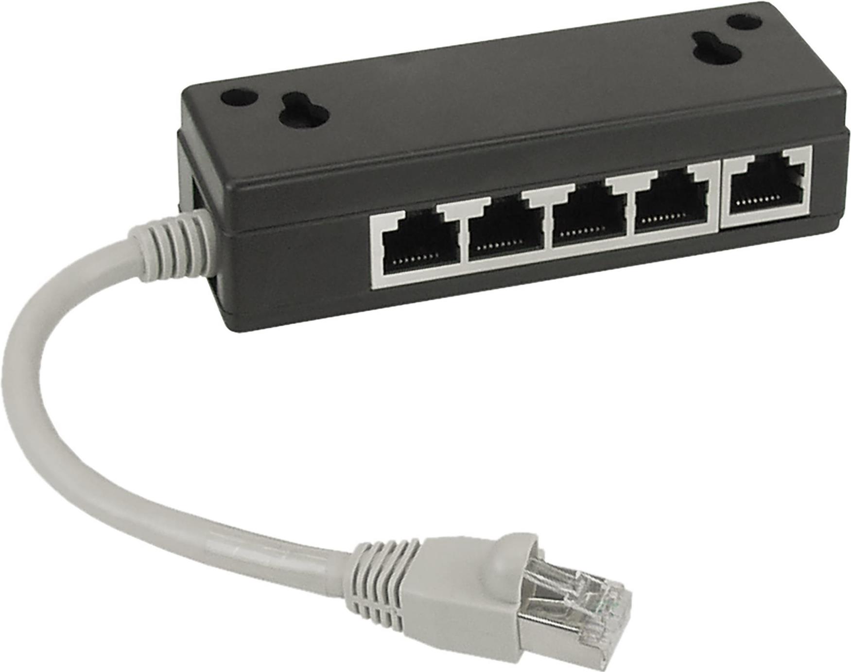 Der ISDN-Verteiler ermöglicht den Anschluss von mehreren ISDN-Geräten an einem S0-Bus.• 5x RJ45 Buchse