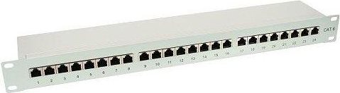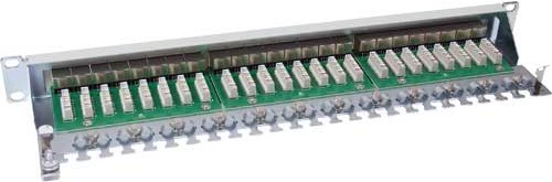 In diesem 48,26cm (19") Patchfeld können bis zu 24 Verlegekabel über LSA Schneidklemmen angeschlossen werden. Das Patchfeld ist bis Cat. 6 ausgelegt und ist voll abgeschirmt. Die RJ45 Anschlüsse sind durchnummeriert. Durch die Rändelschrauben an der Rückseite lässt sich das Gehäuse einfach öffnen und wieder schließen.• Zur Montage im 48,26cm (19") Bereich geeignet