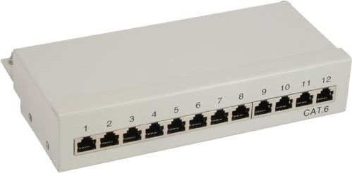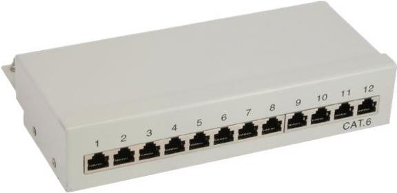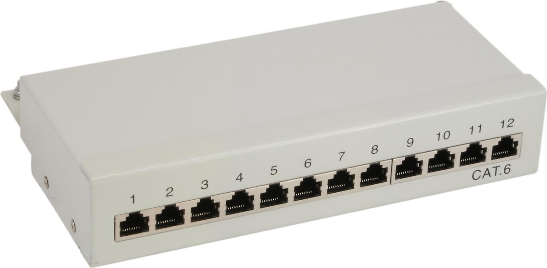 InLine Patchfeld Cat.6, 12-fach, Tisch-/Wandmontage, lichtgrau, RAL9005 (76209)