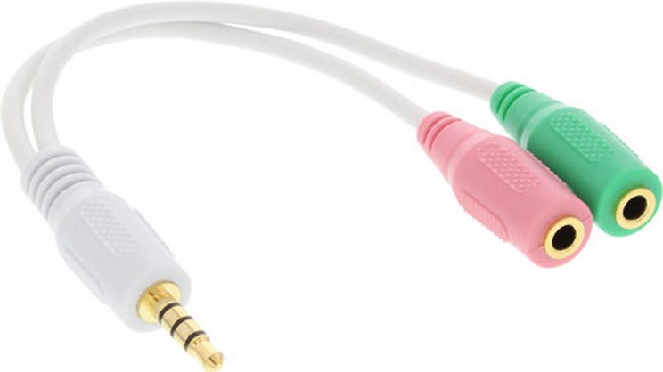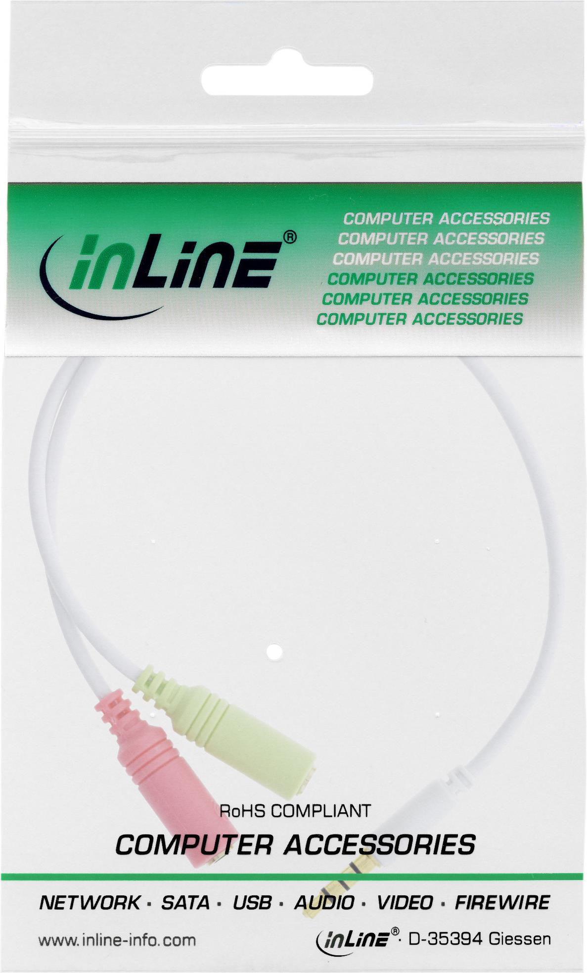 • InLine® Audio Head-Set Adapterkabel, 3,5mm Klinke Stecker 4pol. an 2x 3,5mm Klinke Buchse, 0,15m (99302W)