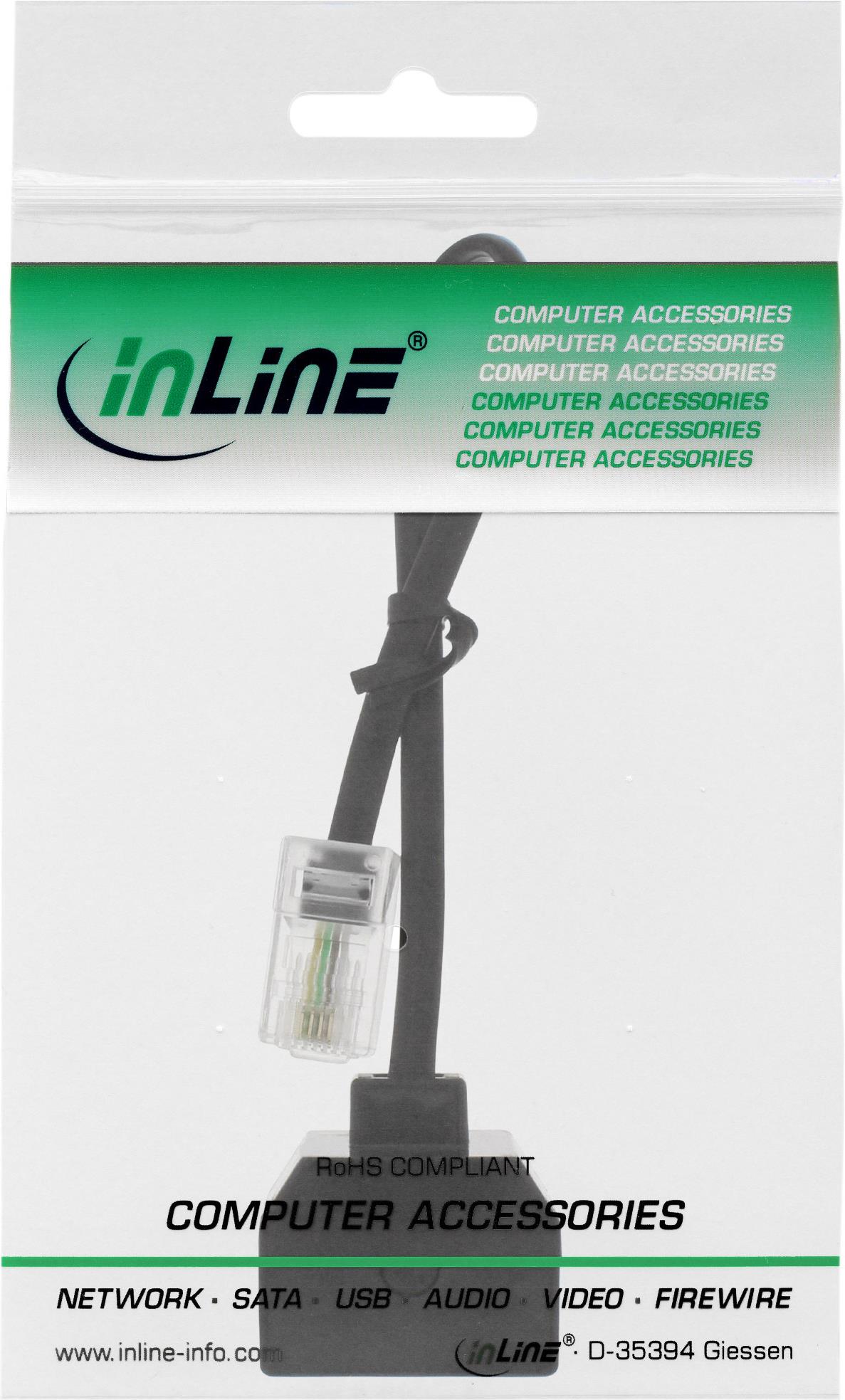 • InLine® ISDN Verteiler 1x RJ45 St an 2x RJ45 Bu, mit Kabel, ohne Endwiderstände, 4pol. belegt (8P4C) (69933B)