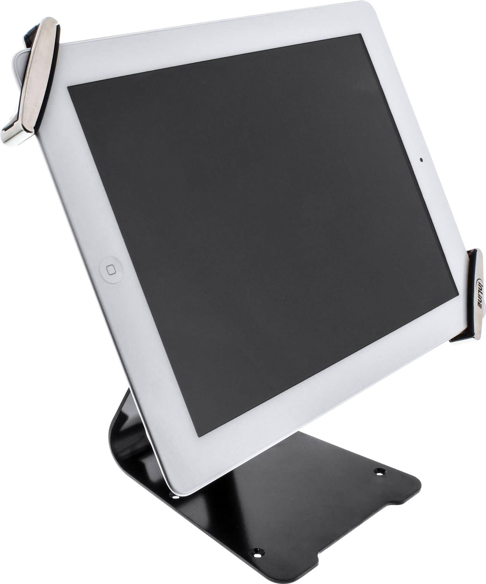 Tablet Halter universell 7\"-10.1\" mit Diebstahlschutz, ideal für Präsentationen, Messen, Ladenlokal etc.• Diebstahlschutz: Abschließbare Halterung mit Sicherheits-Kabelschloss.• Drehbare Halterung mit gepolsterter Diagonal-Aufnahme für das Tablet• Max. Tabletdicke (mit Hülle): ca. 11mm• Max. Tablet-Diagonale (Gehäuse): ca. 33cm• Min. Tablet-Diagonale (Gehäuse): ca. 23cm• Drehbare Halterung zur Verwendung des Tablets in der horizontalen und vertikalen Displayposition, zudem neigbar für beste Positionierung• Stahl-Drahtseil mit 4,4mm Durchmesser, Kunststoffummantelt, Länge ca. 1,5m• Schloß mit Schlüssel zum Verriegeln• Haltefuß bei Bedarf auf der Oberfläche mit 4 Schrauben fest montierbar• stabile Metallausführung• Lieferumfang: Tablet-Halterung, Kabelschloss, 2 Schlüssel, Klett-KabelbinderHinweis: Aufgrund der Vielzahl an Tablets auf dem Markt können die angegebenen Display-Werte in Zoll lediglich Richtwerte zur Größenbestimmung sein. Je nach Abmessungen des Tablets, Gehäuseform und Randstärke kann es dennoch vorkommen, dass das Tablet daher zu klein oder zu groß für die Halterung ist.