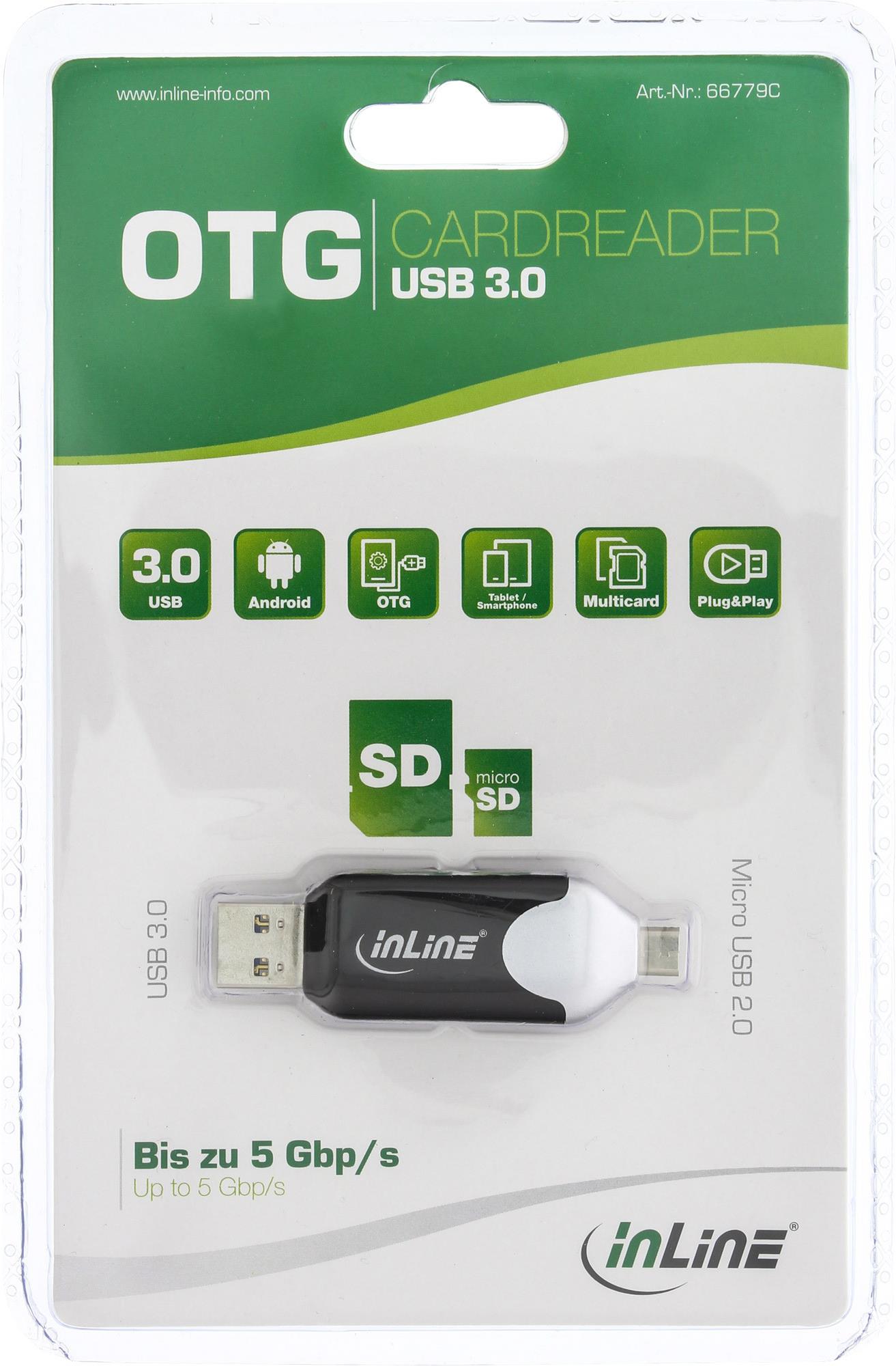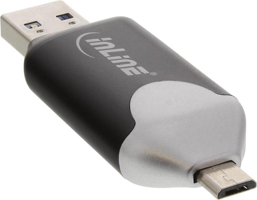 InLine® USB OTG Cardreader mit USB 3.0 und Micro-USB 2.0 Dual Interface, für SDXC und microSDXC (66779C)