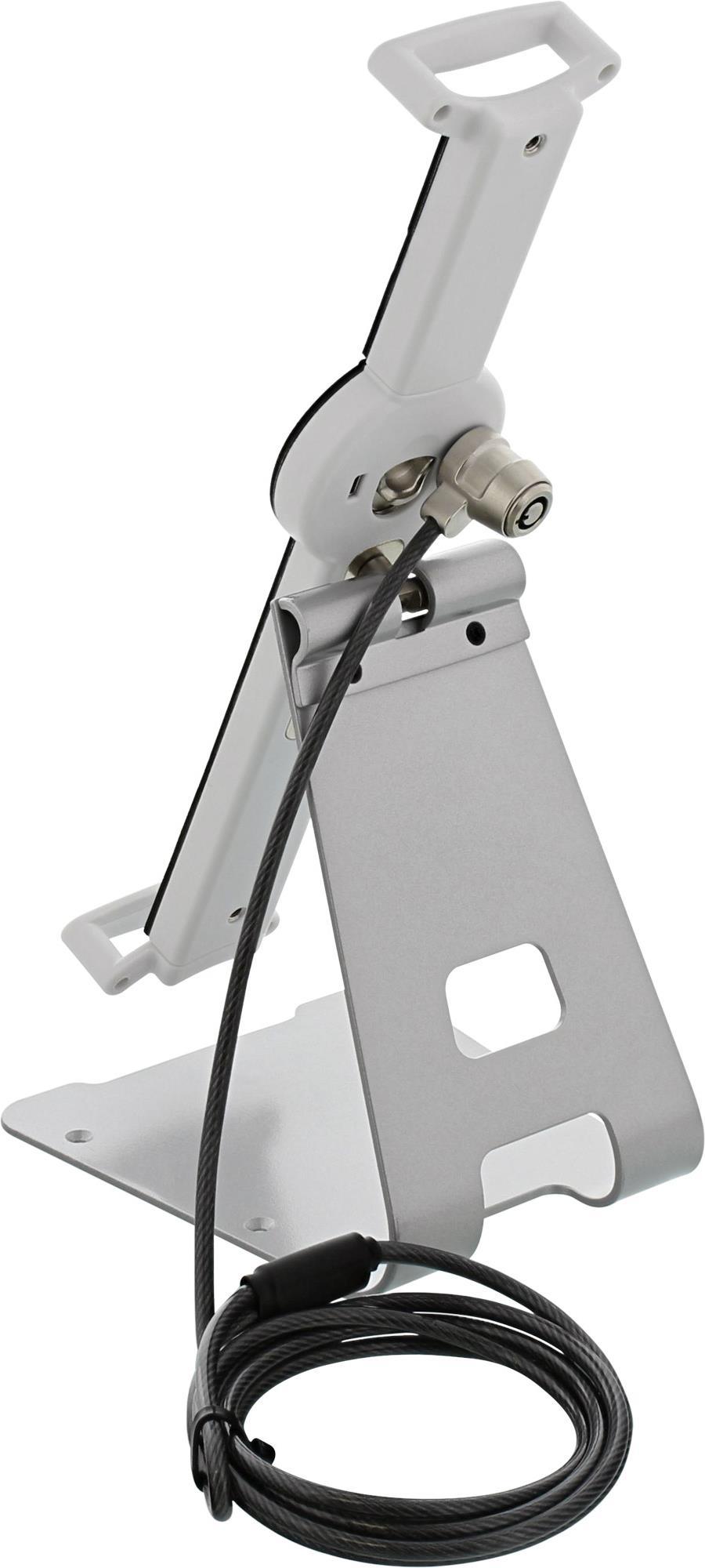 Tablet Halter universell mit Diebstahlschutz, ideal für Präsentationen, Messen, Ladenlokal etc.• Diebstahlschutz: Abschließbare Halterung mit Sicherheits-Kabelschloss.