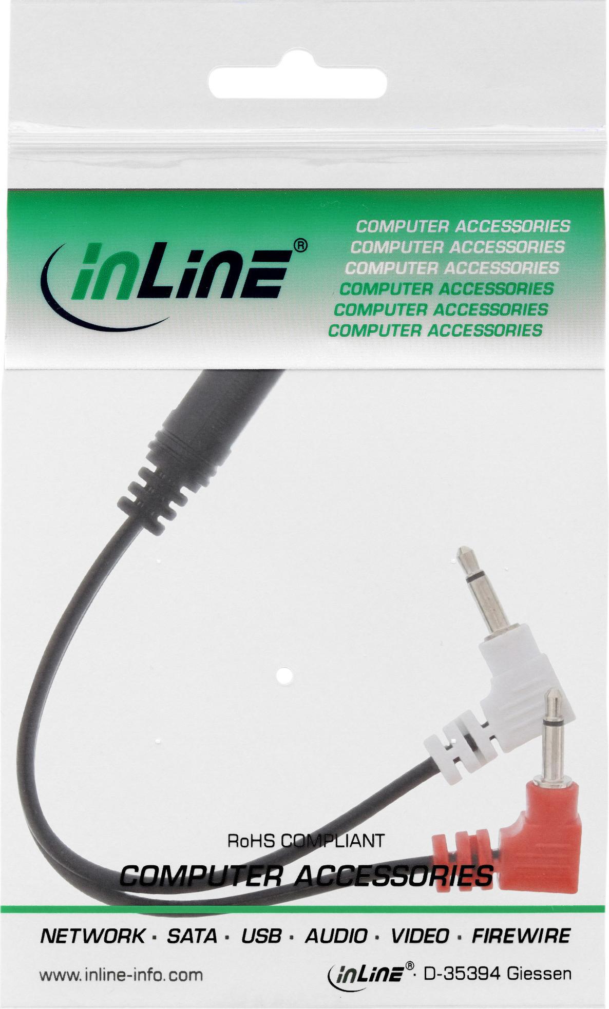 InLine - Kopfhöreradapter - Mini-Stecker (M) gewinkelt bis Stereo Mini-Klinkenstecker (W) - 15cm - Schwarz (99313I)