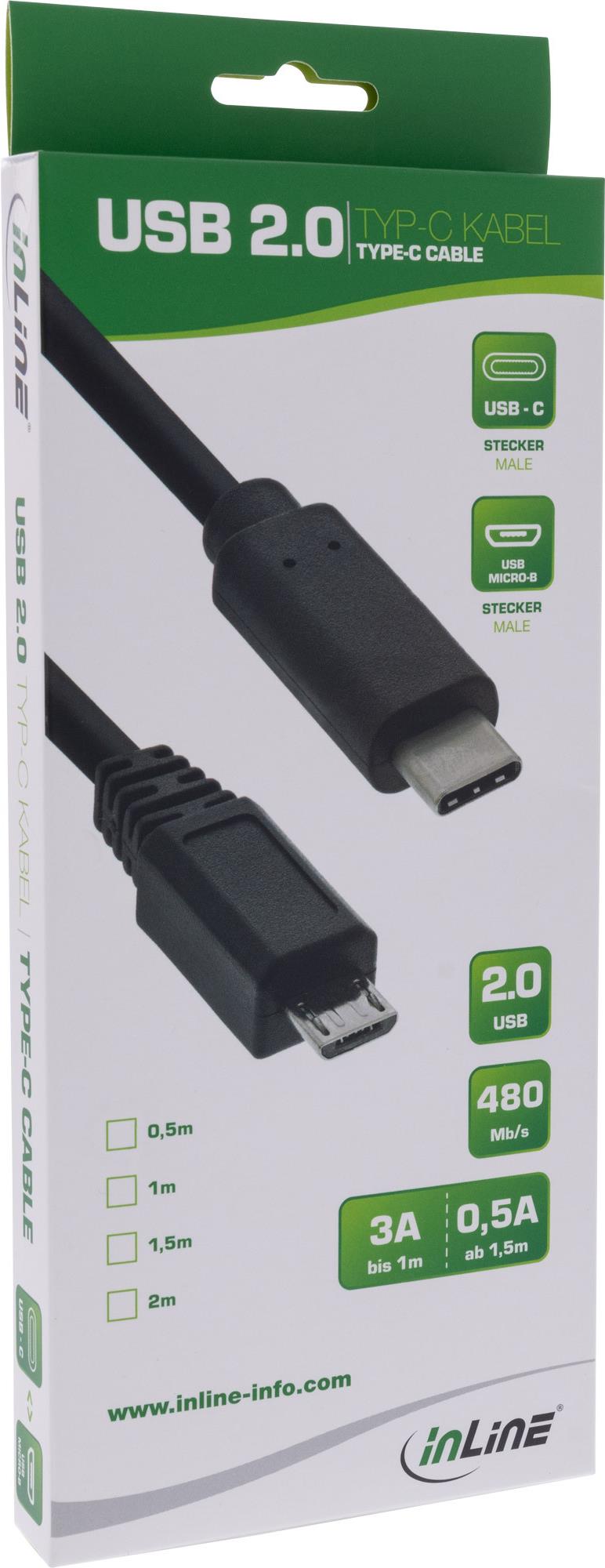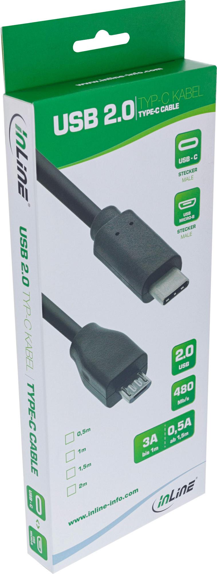 InLine - USB-Kabel - USB-C (M) bis Micro-USB Typ B (M) - USB2.0 - 3 A - 1,0m - Schwarz (35741)
