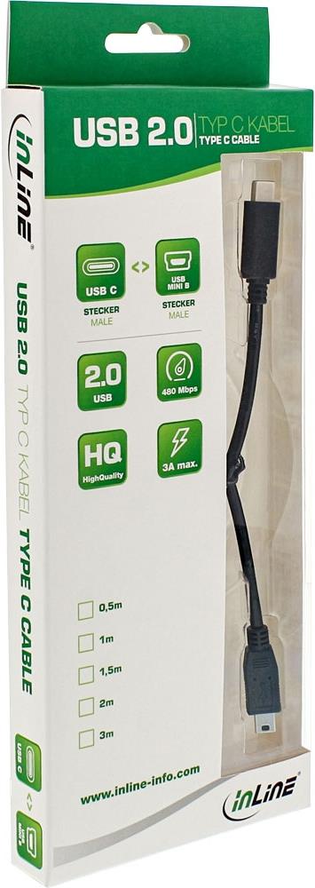 InLine - USB-Kabel - 5-poliger mini-USB (M) bis USB-C (M) - USB2.0 - 3 A - 1,0m - Schwarz (35751)