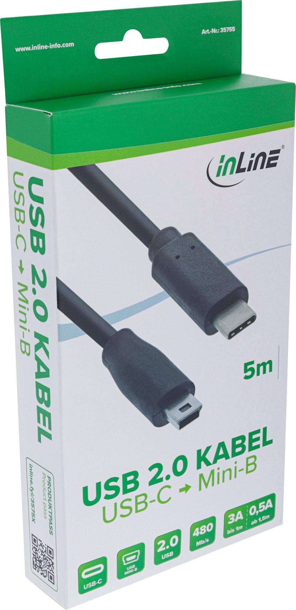 InLine - USB-Kabel - 5-poliger mini-USB (M) bis USB-C (M) - USB2.0 - 0,5 A - 5,0m - Schwarz (35755)