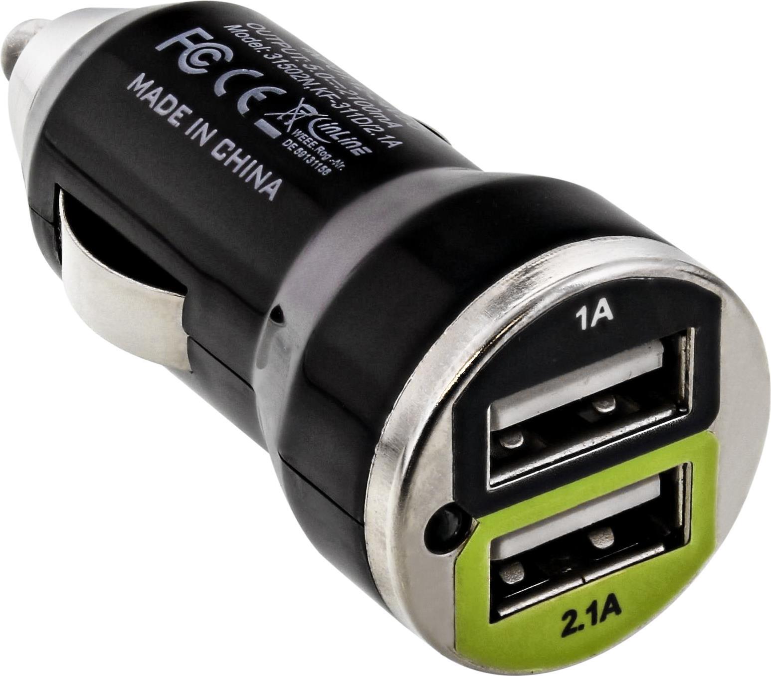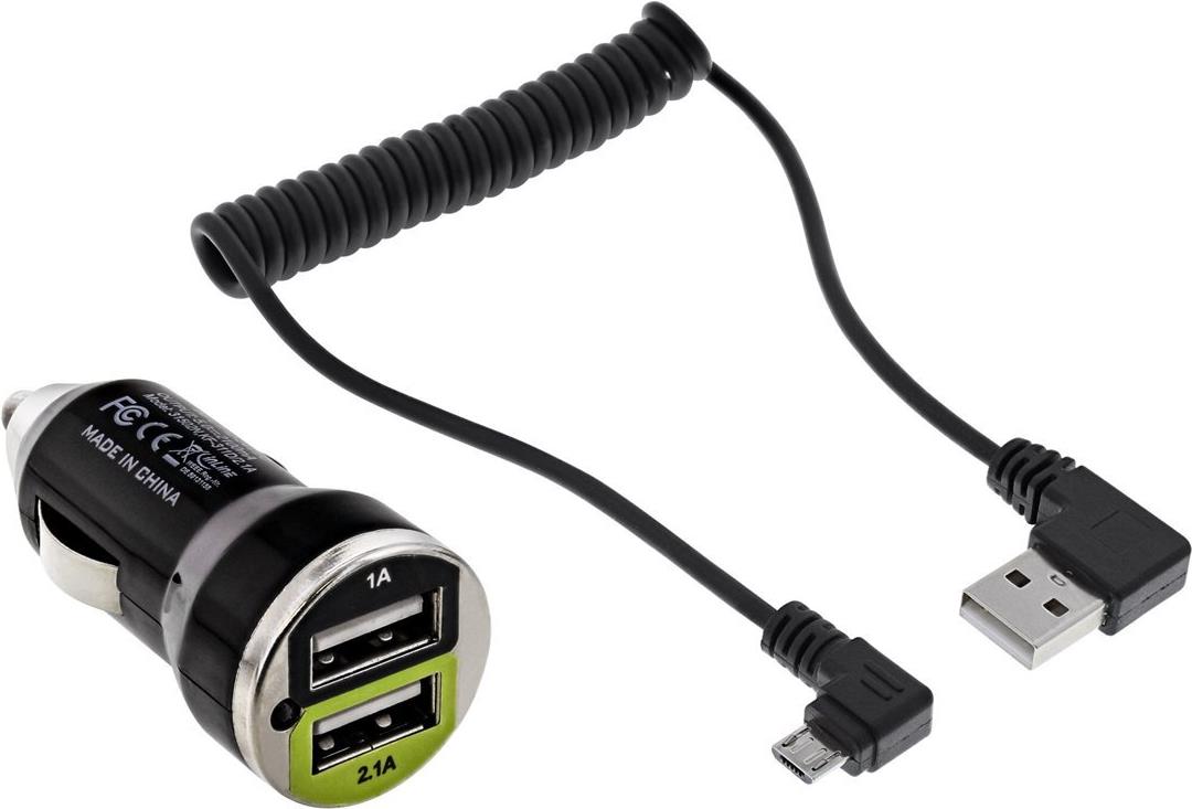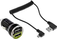 InLine® USB DUAL+ KFZ-Ladeset, Stromadapter mit 1m Spiralkabel, 12/24VDC zu 5V DC/2.1A (31502C)