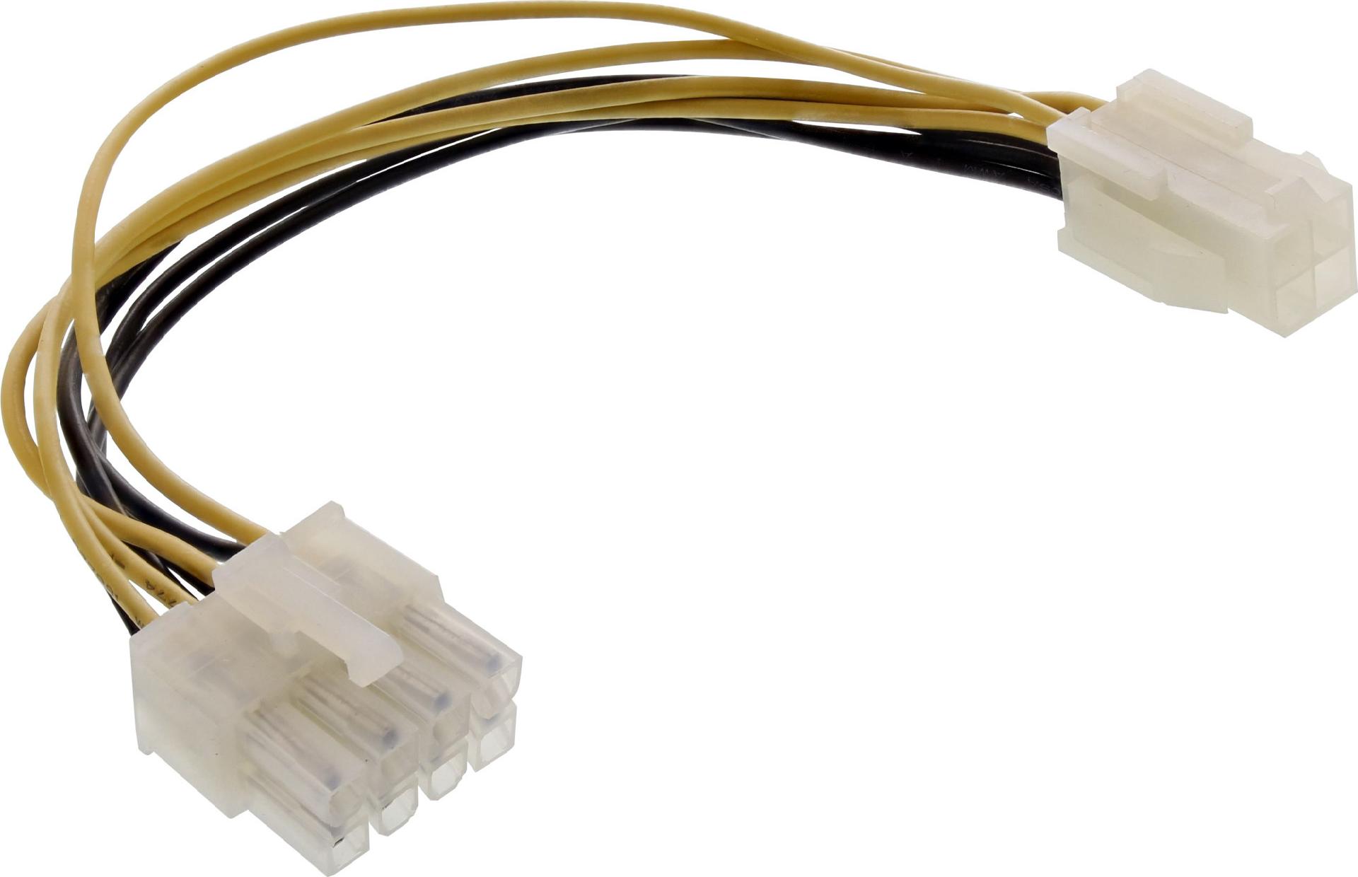 Mit diesem Stromadapter kann ein herkömmlicher 4pol. Netzteilanschluss auf einen 8pol. Anschluss (auch EPS) erweitert werden, wie er bei neueren Mainboards benötigt wird.• 4pol. Buchse auf 8pol. Stecker
