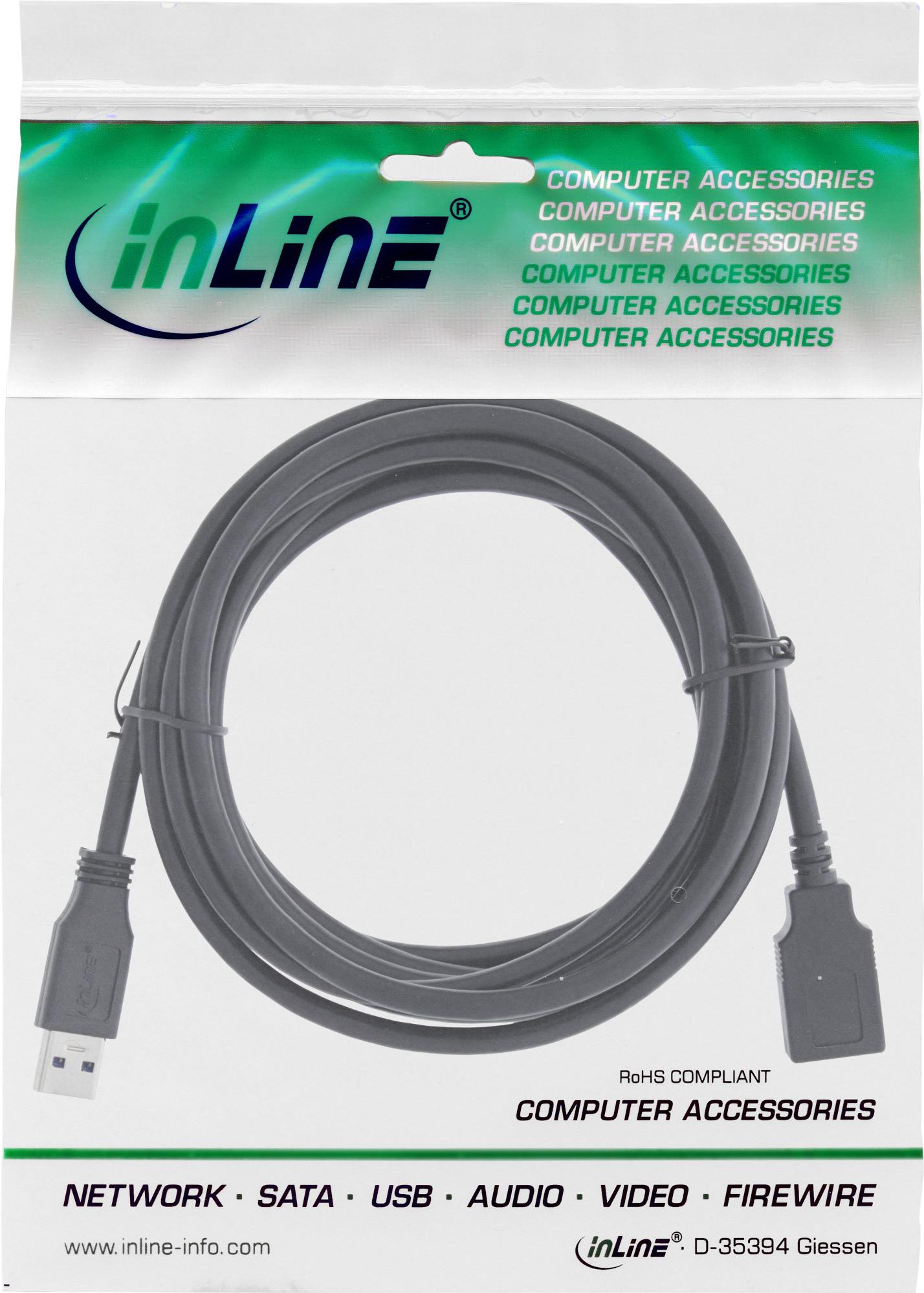InLine 35610 - USB-Kabel - USB Typ A, 4-polig (M) - USB Typ A, 4-polig (W) - 1,0m - Schwarz (35610)