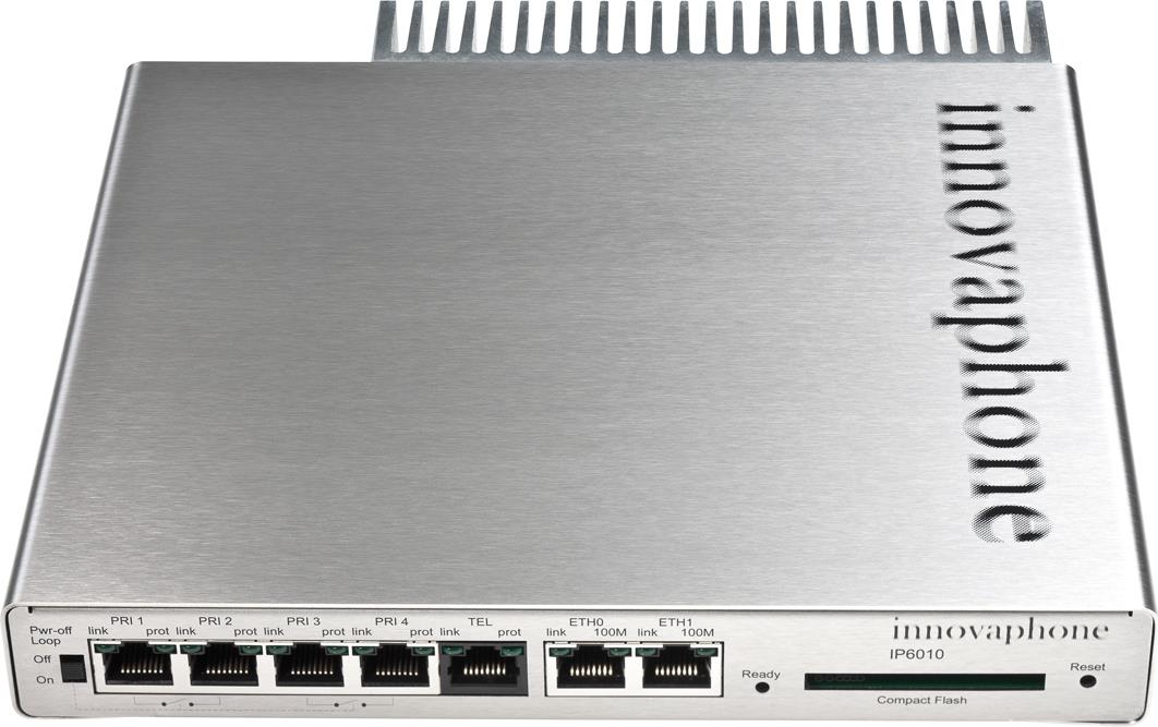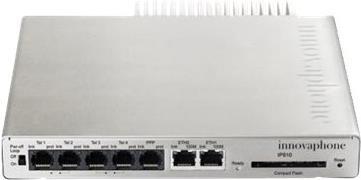 Die IP810 ist ein skalierbares ISDN-Gateway mit bis zu fünf ISDN-Anschlüssen. Die Anzahl der Schnittstellen kann bedarfsgerecht über Lizenzen aktiviert werden und so mit den Ansprüchen ohne Hardwareaustausch mitwachsen. Wahlweise kann das Gateway auch für den Einschleifbetrieb in bestehende Systeme oder für lokale Redundanz mit zwei ISDN-Leitungen konfiguriert werden. Eine Power off loop schaltet jeweils 2 der ISDN Schnittstellen im stromlosen Zustand durch. Gleichzeitig bietet die IP810 eine leistungsstarke Hardwareplattform für die innovaphone PBX mit bis zu 500 Registrierungen.