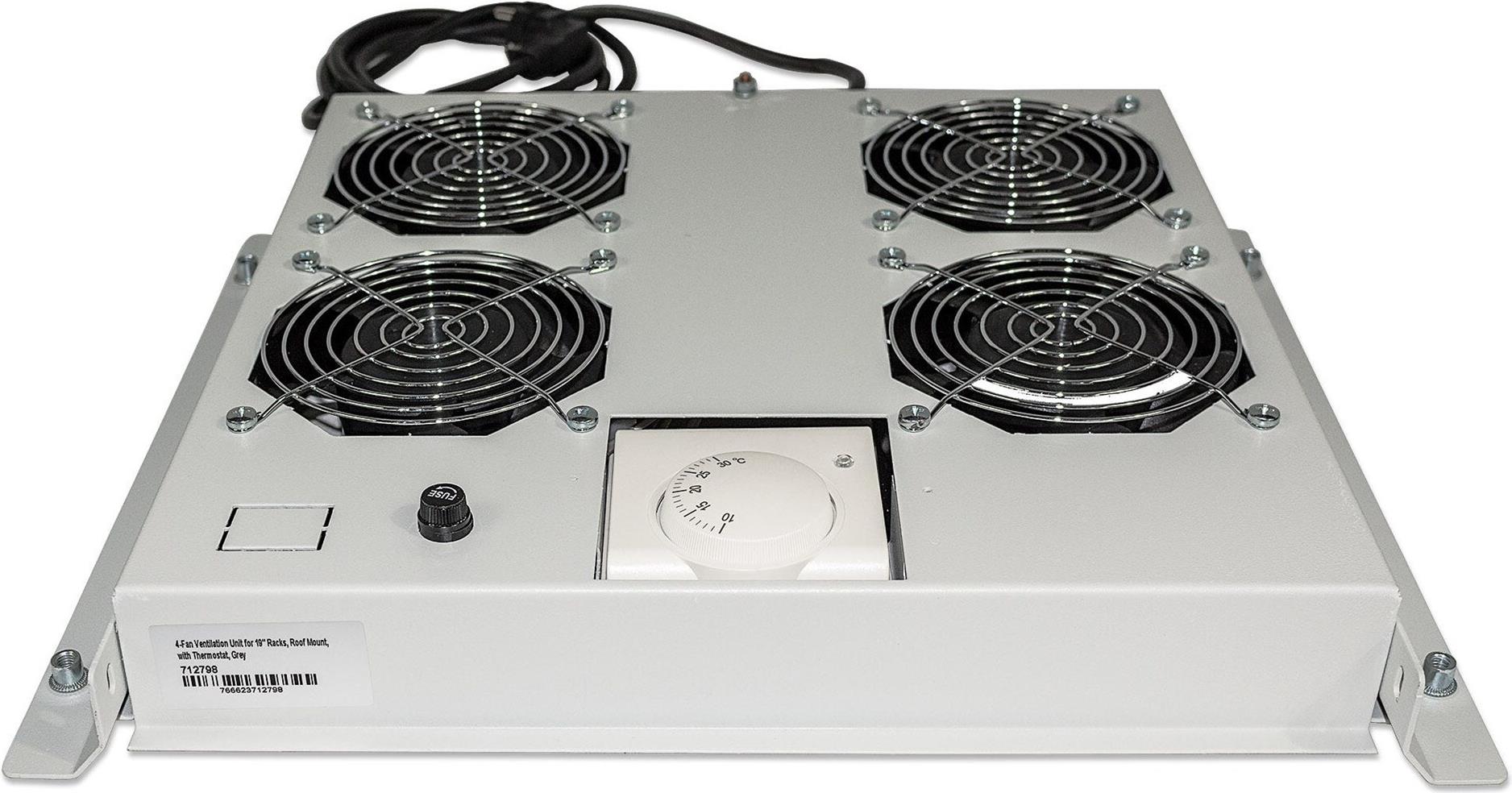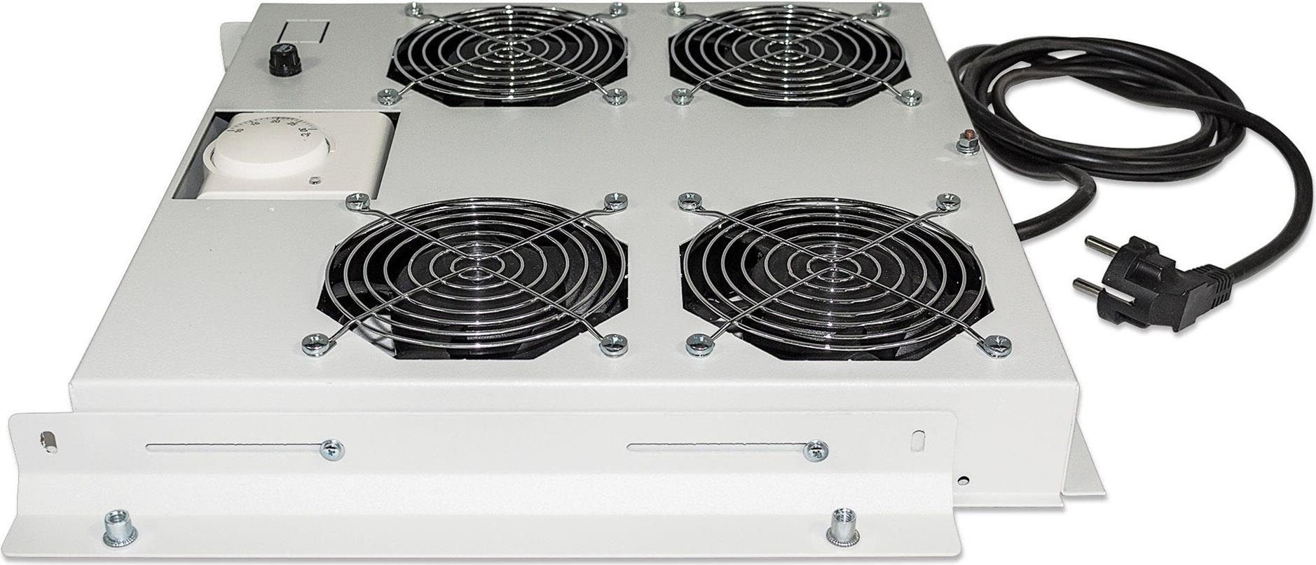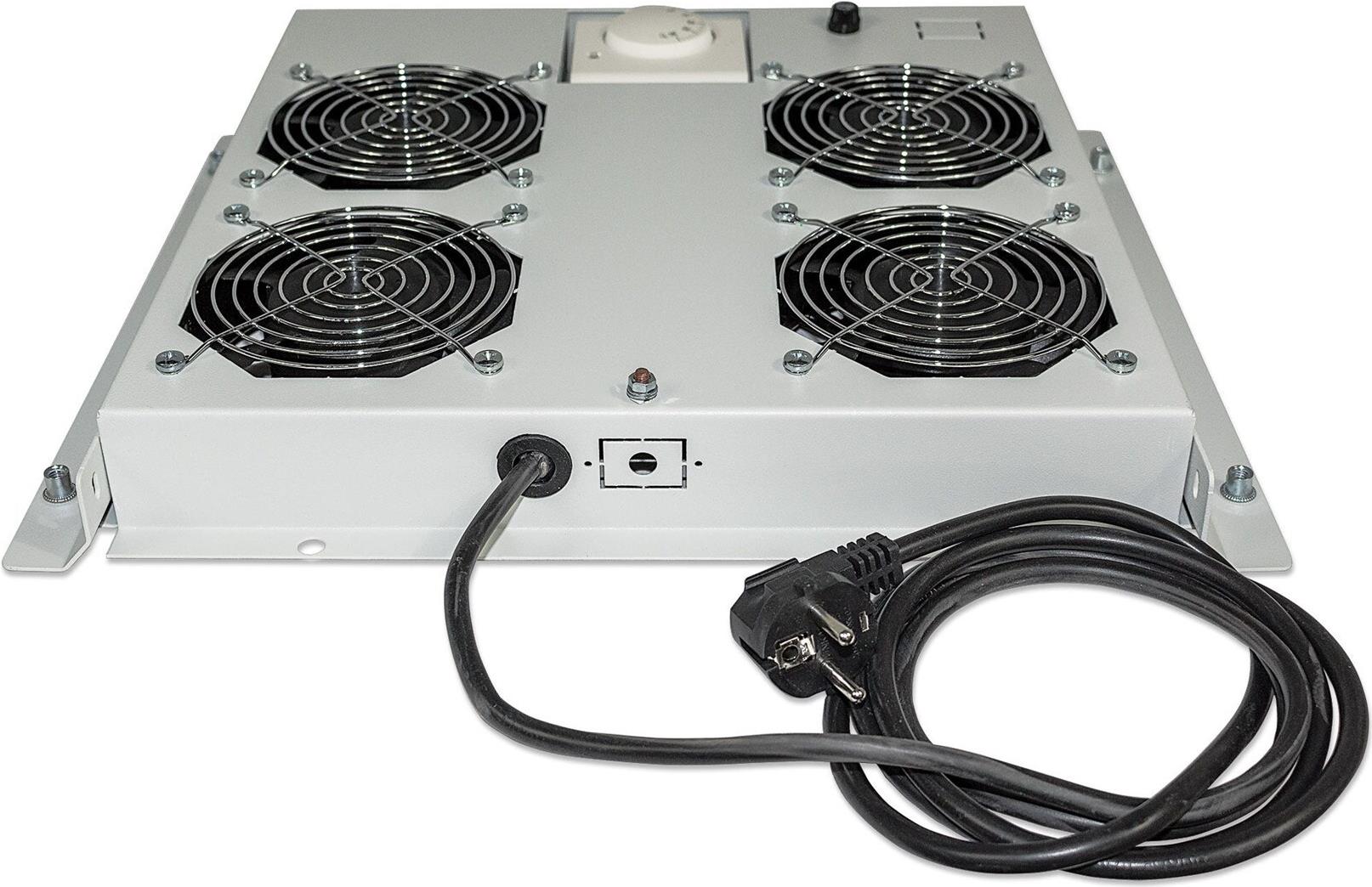 Intellinet - Rack-Lüfterfach (220/240 V) mit Thermostat (4 Lüfter) - Grau, RAL 9005 - 48,3 cm (19") (712798)