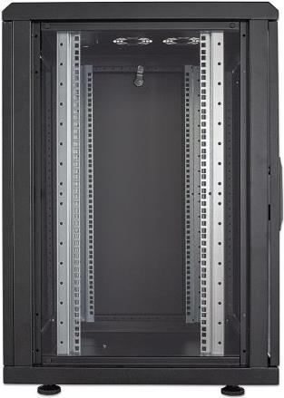 Leistungsmerkmale Abschließbare Fronttüre, abnehmbares Seitenteil, Glastür, verstellbare Schienen, oben und unten Kabeleingangspunkte, Flat Pack, abnehmbare Rückwand, höhenverstellbare Füße