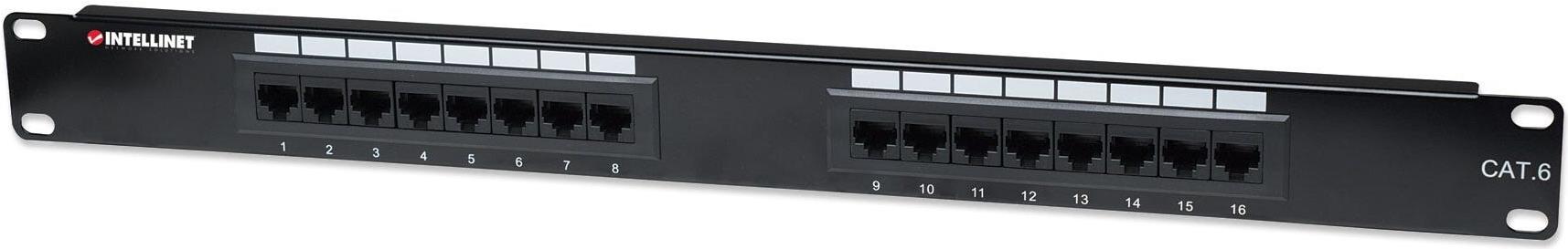 INTELLINET 48,30cm (19") Patchpanel Cat6 16 Port, ungeschirmt, 1 HE (519526)