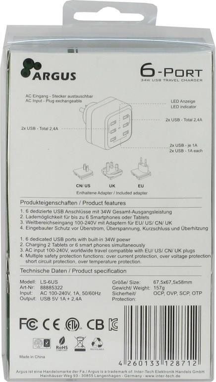 Inter-Tech Argus LS-6US - Netzteil - 34 Watt - 6,8 A - 6 Ausgabeanschlussstellen (USB) (88885322)