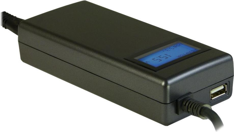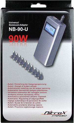 Warum ein teures Marken-Notebooknetzteil kaufen, wenn es nur einen Gerätetyp unterstützt? Mit dem Universal Notebookadapter NB-90U der Marke Nitrox Xtended sind sie nun der Lage, die meisten gängigen Notebooks schnell und effizient mit Strom zu versorgen. Durch eine Vielzahl an austauschbaren Steckaufsätzen ist für nahezu jedes Modell der passende Anschluss vorhanden.Eine weitere Besonderheit dieses Gerätes ist die sich automatisch anpassende Voltzahl, je nachdem welchen Steckaufsatz Sie benutzen! Somit ist eine fehlerhafte Ausgangsspannung, die das zu betreibende Gerät beschädigen könnte, praktisch ausgeschlossen.Zusätzlich kommt diese 90 Watt Version mit einer integrierten Aufladebuchse für USB-Geräte daher.Der NB-90U ist ein echtes Allround Aufladegerät für alle Fälle.Produkttext[/head]Universal-Notebook-Adapter 90WDie Notebook-Adapter der CobaNitrox Extended Serie tragen die Bezeichnung Universaladapter mit vollem Recht. Dank der patentierten Anschlußtechnik ist ein falsches Einstellen der Ausgangsspannung unmöglich. Einfach richtigen Adapter ( Tip ) auswählen, aufstecken und der Adapter ist betriebsbereit.FlexibilitätDie 10 mitgelieferte Tips bieten die Möglichkeit die gängisten Notebooks anzuschließen. Alle kompatiblen Notebooks sind auf dem unten auszuwählendem Datenblatt aufgeführt.UniversalDie Technik der automatischen Einstellung der richtigen Ausgangsspannung sitzt im Tip. Mit der Wahl des für Ihr Notebook passenden Tips haben sie schon Ihren Teil der Aufgabe erledigt. Der Adapter erkennt nun die Informationen des Tips und stellt die Ausgangsspannung automatisch auf den richtigen Wert ein. Falsches Anschließen ist damit nahezu ausgeschlossen.ÜbersichtZur Kontrolle wird die automatisch eingestellte Ausgangsspannung im großen Display angezeigt. So können auch besonders Besorgte beruhigt Ihr Notebook anschließen.... und noch etwasZusätzlich bietet die 90W Version des CobaNitrox Notebook-Adapters auch noch die Möglichkeit über den integrierten USB Anschluß Peripheriegeräte zu betreiben oder zu laden.[head]Hauptmerkmale