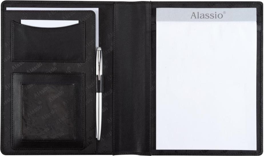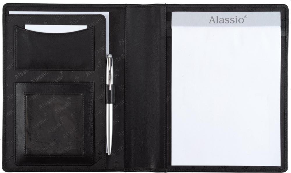 Alassio Schreibmappe "BORMIO", DIN A5, Nappa-Leder, schwarz mit DIN A5 Block, Stift, A5 Einschubfach, Visitenkartenfach (43008)