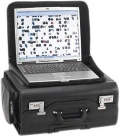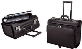 Piloten-Laptopkoffer mit versenkbarem Teleskoptrolleysystem und Laptopfach.