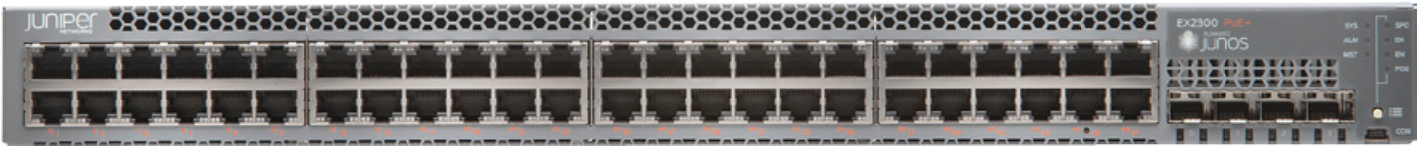Der Ethernet-Switch EX2300 ist eine kompakte, kostengünstige Lösung mit hoher Dichte für kleine Netzwerkumgebungen, bei denen Platz und Leistung eine entscheidende Rolle spielen. Mit einem geringen Platzbedarf von 1 HE eignen sich die Ethernet-Switches EX2300 ideal für Bereitstellungen auf Zugriffsebene in kleinen Zweigstellen, in Einzelhandels- und Arbeitsgruppen-Umgebungen und für konvergenten Netzwerkzugang in größeren Netzwerken. Dieses Modell unterstützt die einzigartige Virtual-Chassis-Technologie von Juniper, dank derer bis zu vier Switches miteinander verbunden und als ein einziges Gerät verwaltet werden können.