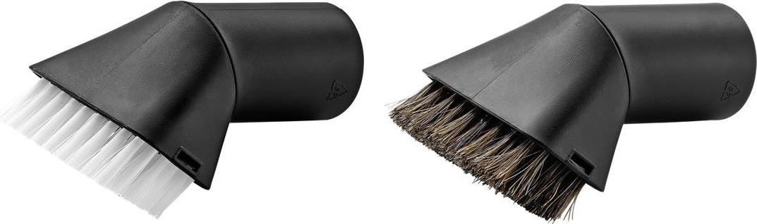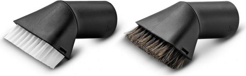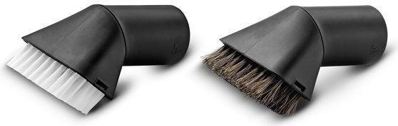 Das Saugpinselset ist ein Zubehörset bestehend aus zwei Saugpinseln mit harten bzw. weichen Borsten. Der Saugpinsel mit harten Borsten dient der gründlichen Reinigung von Polster- und Teppichflächen (z. B. Fußmatten oder Autositze). Der Saugpinsel mit weichen Borsten ermöglicht eine schonende Reinigung empfindlicher Oberflächen (z. B. Armaturenbrett oder Mittelkonsole). Das praktische Saugpinselset ist geeignet für alle Kärcher Home & Garden Mehrzwecksauger.