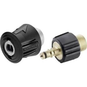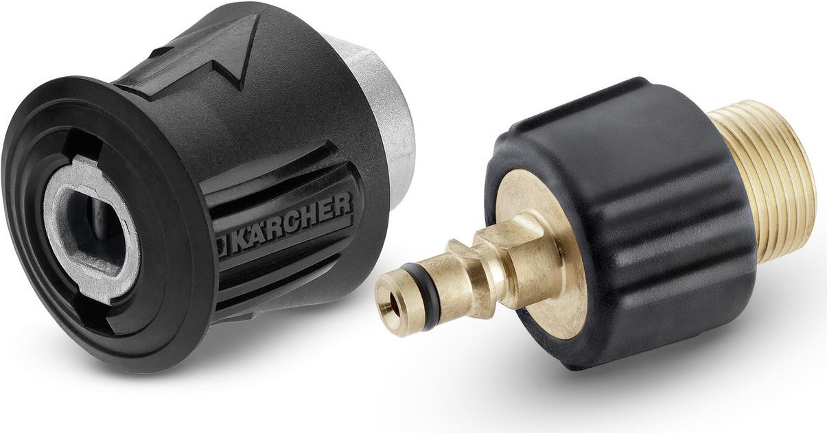 2-teiliges Adapterset zum Anschluss eines Verlängerungsschlauchs mit Schraubgewinde an Hochdruckreiniger mit Quick Connect-Schnellverbindung.