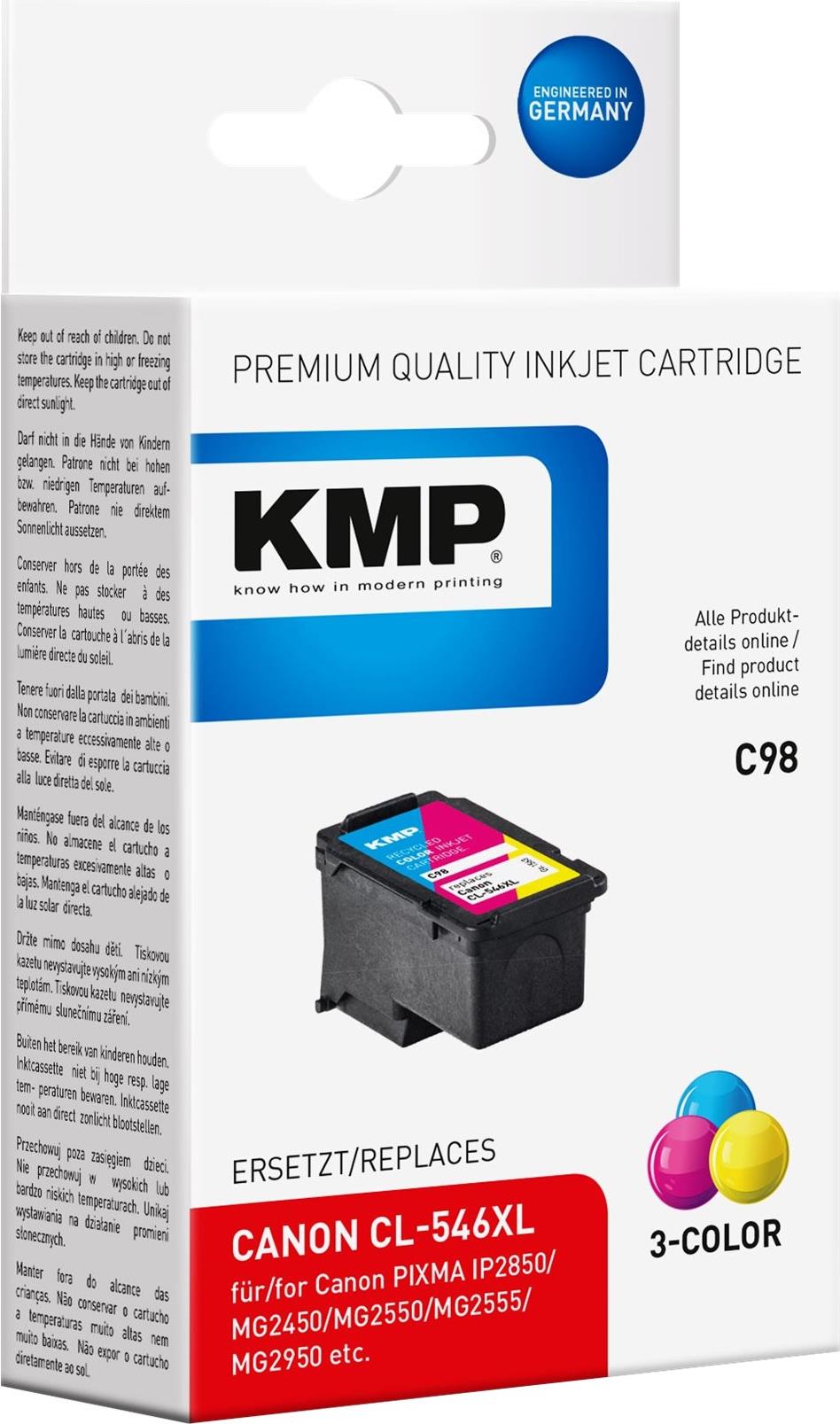 Produktbeschreibung KMP C98 - Hohe Ergiebigkeit - Farbe (Cyan, Magenta, Gelb) - kompatibel - Tintenpatrone (Alternative zu: Canon 8288B001, Canon CL-546XL)
