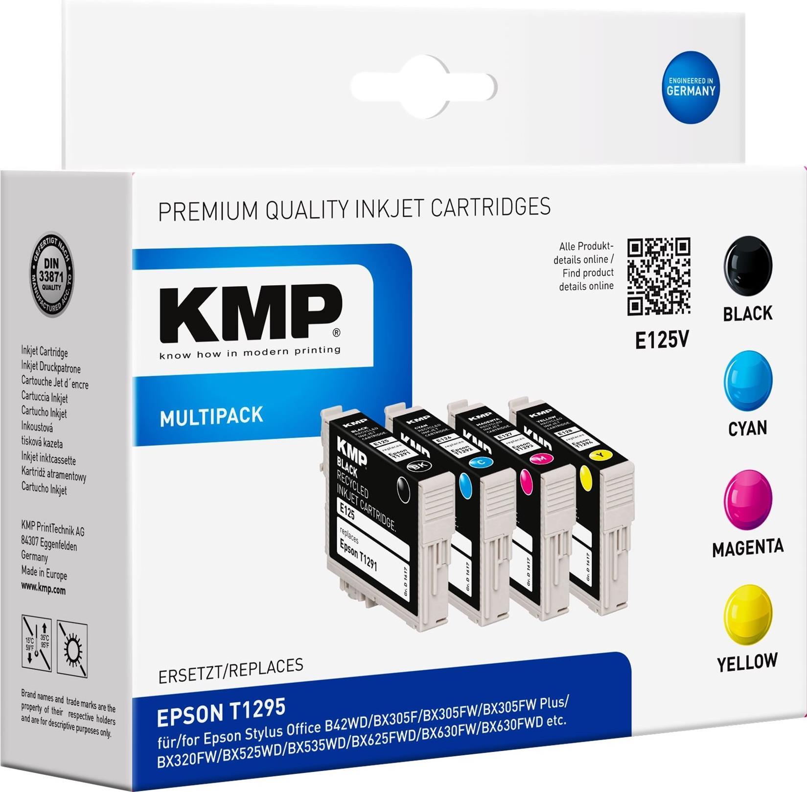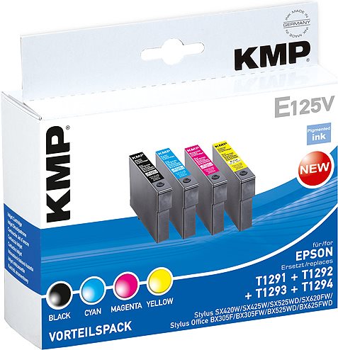 | Produktbeschreibung | KMP E125V - Gelb, Cyan, Magenta - compatible - Tintenpatrone (Alternative zu: Epson T1292, Epson T1293, Epson T1294) |