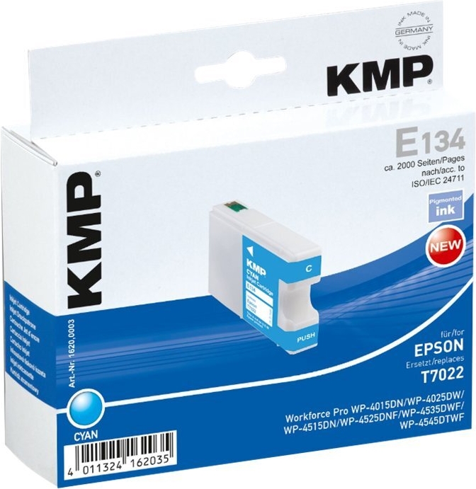 KMP E134 - 21 ml - Cyan - kompatibel - Tintenpatrone (Alternative zu: Epson T7022) - für Epson WorkForce Pro WP-4015, WP-4025, WP-4095, WP-4515, WP-4525, WP-4535, WP-4545, WP-4595 (1620,4003)