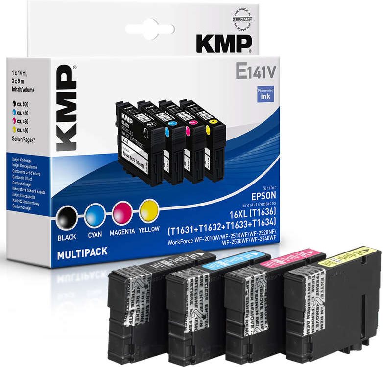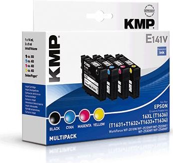 | Produktbeschreibung | KMP MULTIPACK E141V - 4er-Pack - Schwarz, Gelb, Cyan, Magenta - kompatibel - Tintenpatrone (Alternative zu: Epson 16XL, Epson C13T16314010, Epson C13T16324010, Epson C13T16334010, Epson C13T16344010) |