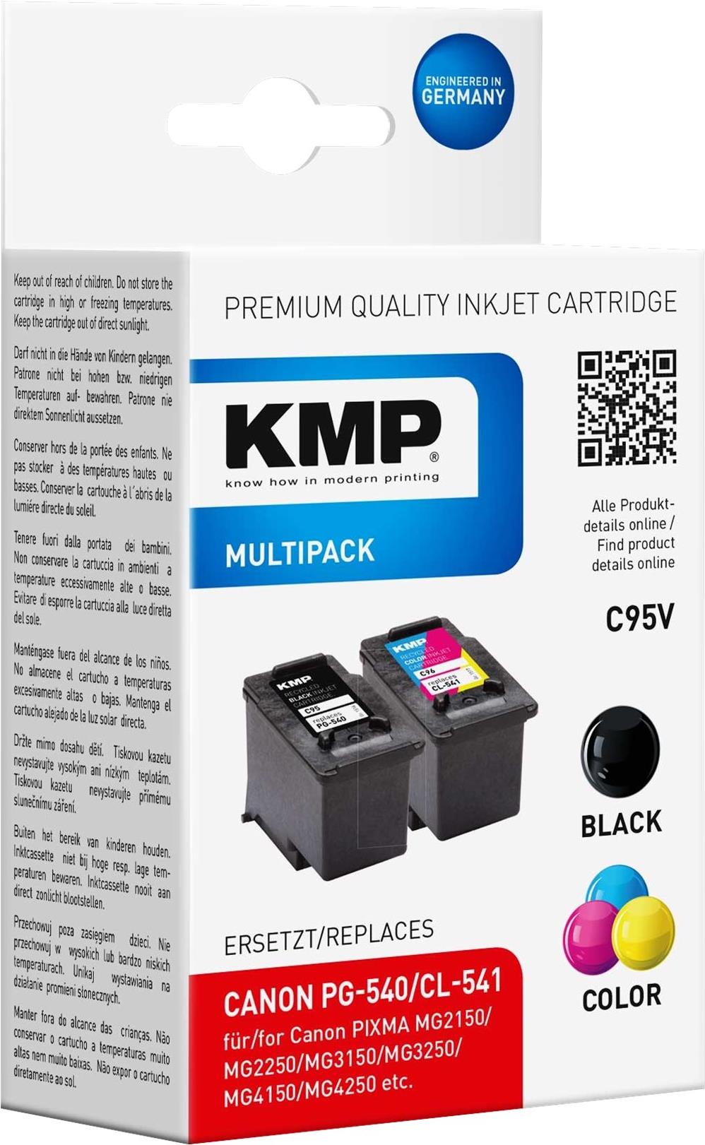 | Produktbeschreibung | KMP MULTIPACK C95V - 2er-Pack - Schwarz, Farbe (Cyan, Magenta, Gelb) - kompatibel - Tintenpatrone (Alternative zu: Canon 5225B005, Canon 5227B005, Canon CL-541, Canon PG-540) |