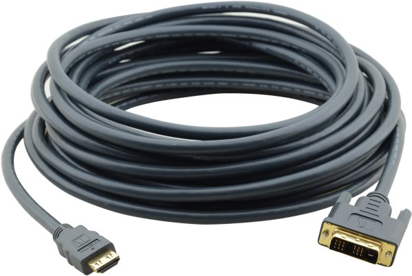 Kramer HDMI/DVI-Kabel sind High-Performance Kabel mit einem vergossenen HDMI-Stecker an einem Ende und einem DVI-Stecker am anderen Ende. Sie wurden entwickelt zur Verbindung zwischen digitalen Video-Quellen und Anzeige-Geräten bzw. Aufnahme-Geräten, die nicht über beide Eingänge, DVI und HDMI, verfügen.