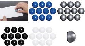 Formvollendet durch eine polierte Halbkugel mit Hochglanz-OberflächeMade in GermanyFür designorientiertes Präsentieren: In repräsentativen Räumen, Agenturen,MuseenElegantes Unterstreichen der Corporate Identity-Farben oder um bewusste Farb-Akzente zu setzenAngenehme HaptikUnterseite der Ferrit-Magnete zum Schutz der magnethaftenden OberflächelackiertStabil: Gehäuse aus bruchsicherem KunststoffØ 30 mm, Höhe 20 mmSchadstoffarm gefertigt am Standort DeutschlandVielfältig: Viele Farben zur AuswahlFarbig sortiert (99) bestehend aus: je 2 x weiß, blau, grau, schwarz, silberNichts geht verloren: Auf praktischer Blechtafel mit Eurolochung zumAufhängen