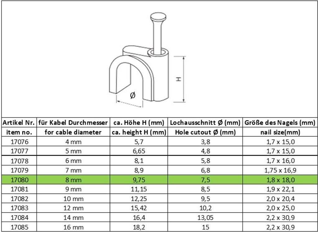 Kabelschelle, weiß - max. Kabeldurchmesser : 8,0 mm
