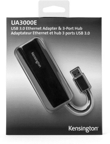 KENSINGTON UA3000E USB 3.0 to Ethernet Adapter with USB Hub (K33982WW)