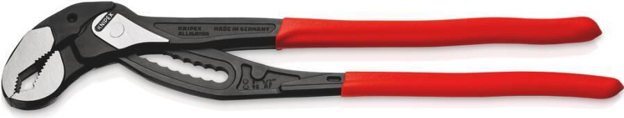 Die KNIPEX Alligator XL bietet die Leistungsfähigkeit und den Komfort einer Wasserpumpenzange bei 50 % weniger Gewicht und einer größeren Greifkapazität (3 1/2“) als vergleichbare Rohrzangen. Im handlichen Format von 400 mm Länge findet die KNIPEX Alligator XL in jedem Werkzeugkoffer ihren Platz.