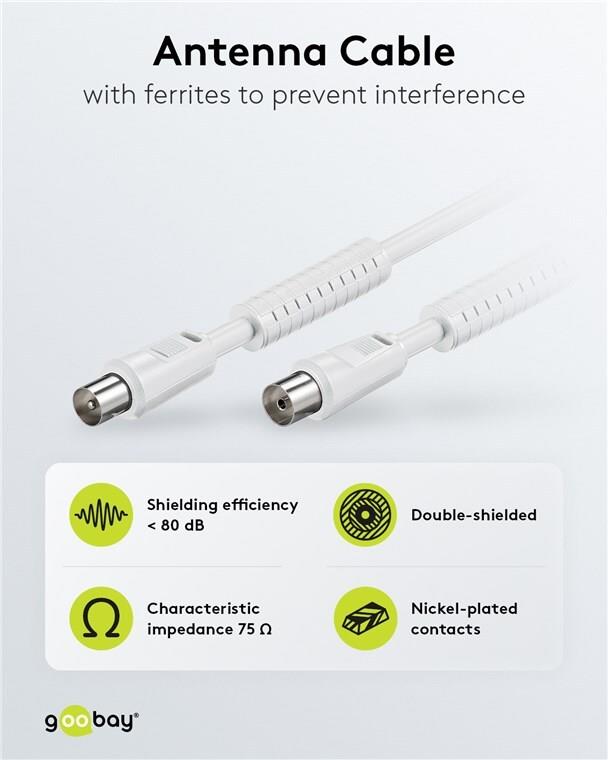 Wentronic Goobay Antennen Anschlusskabel, 100% geschirmt, Ferrite, Weiß, 2.5 m - IEC/Koax-Stecker <=> IEC/Koax-Buchse (50724)