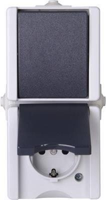 Kombination senkrecht Schalter/Schutzkontaktsteckdose AP-Feuchtraum proAQA grau (139356003)