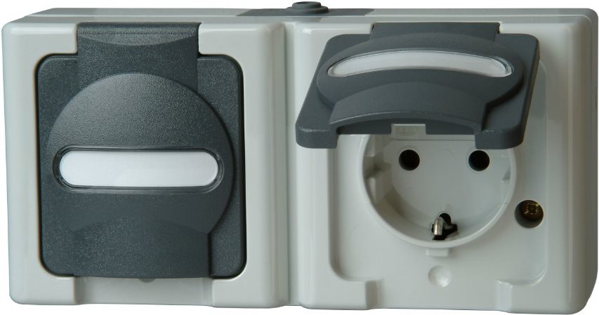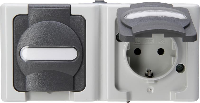 Kombination waagerecht Schalter/Schutzkontaktsteckdose AP-Feuchtraum BLUE ELECTRIC grau (131256002)