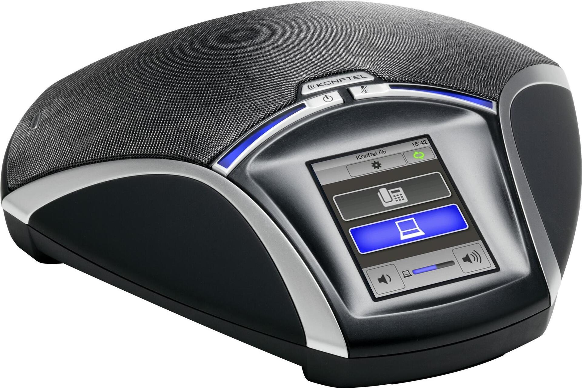 Das Konftel 55 ist ein elegantes und benutzerfreundliches Freisprechtelefon mit beeindruckender, kristallklarer HD-Klangqualität dank unserer OmniSound -Klangtechnologie. Der Touchscreen erleichtert die Steuerung von Anrufen, unabhängig davon, ob Sie an einen Computer, ein Mobiltelefon oder ein Tischtelefon angeschlossen sind.